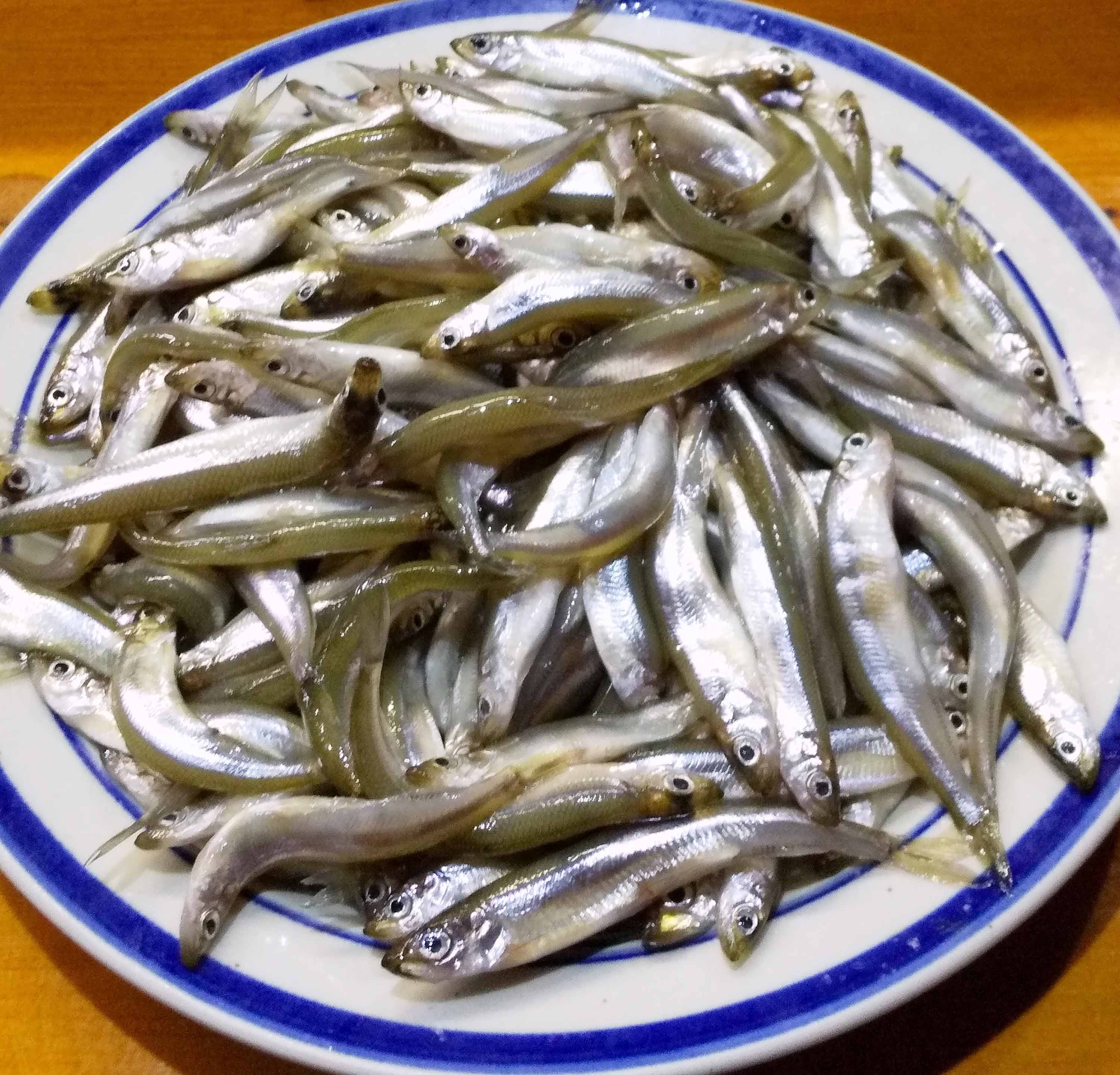 Arrival the first Wakasagi (Japanese pond smelt). |